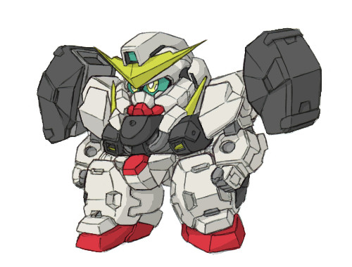 口元がニヤリ。 さて、世の流れに疎い僕としてはいつの間にといった感じで、もう新ガンダムの放送始まってたんですね。 静岡人なので恒例、一週間遅れで第1話を視聴しました。 感想はまあ、まだ未知数ということで置いといて、とりあえずヴァーチェ落書き。 パーツの位置を整理して大きさも微調整すればSDでも何とかできそうではある。 OOのモビルスーツは体形が様々なので、BB戦士として色々出てくれたら面白んだろうな、と思う。