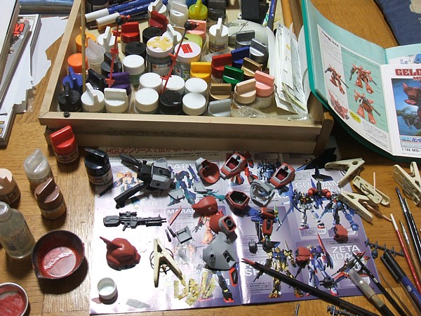 × [PR]上記の広告は3ヶ月以上新規記事投稿のないブログに表示されています。新しい記事を書く事で広告が消えます。 作業風景晒し。 なんとも汚いですが大体いつもこんな感じです。 ゲルググJは色調で手間取っております。HGUCの色セットとか買っておけばよかったと 思ったところでどうしようもなく。 張飛は現在こんな状況。 ツノ、太く。雷蛇の柄をランナーに替えて長く。巻いてあるのは刺繍糸。脚(腿)2mm延長。 頭のやつも彫りました。シールではなく箱絵のを参考にしています。 腕はこんな一軸可動にしてみました。山口式……でしたっけ? 昔からある単純なものですが、三国伝の体形だからこそできる可動方法だと思います。 簡単ではありますがやはり保持力はそれなりなので注意。 あとポーズ幅も、約90度・135度・180度の三通り程度の限定になります。僕としてはそれだけあれば充分なのでこれでよしとしますが。 そういえば、近所の模型屋もここのところの再販ものは一通り仕入れているようでなによりです。棚に多種のBB戦士が並んでいるのを眺めてるとき多分すごいニヤケた顔してるんだろうな自分。しかも小一時間。 しかし、棚が充実したのは良いものの、棚の位置自体がどんどん隅に追いやられスペースも心なしか……。 貧乏人ゆえ確保にも限界があり、さらには僕はコンプやらストックやらの買い方は滅多にしないしなぁ。 不精な客ですがなんとか存続していってくれることを願うばかりです。 PR